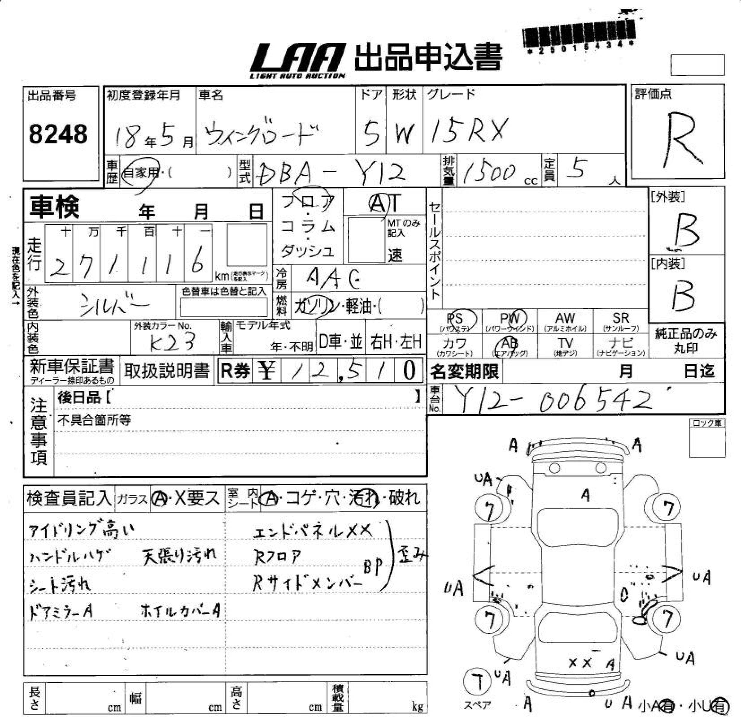 NISSAN WINGROAD 15RX - лот 8248