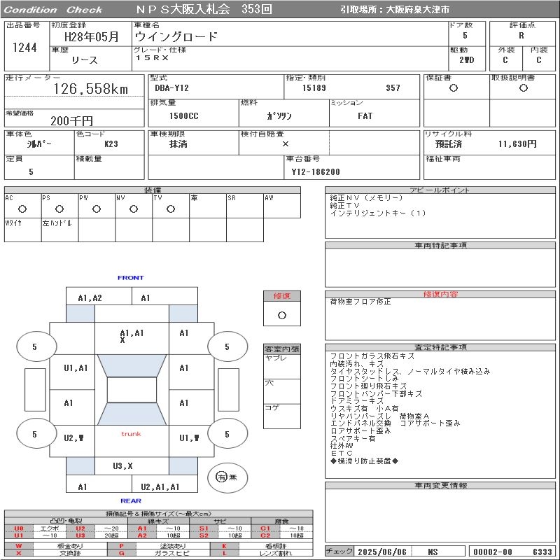 NISSAN WINGROAD 15RX - лот 1244