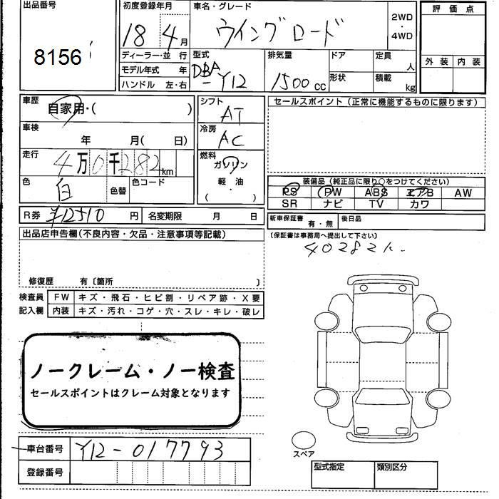 Все аукционы NISSAN WINGROAD