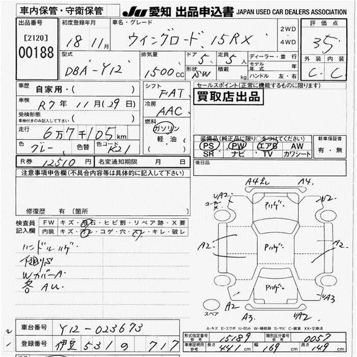 NISSAN WINGROAD 15RX - лот 188