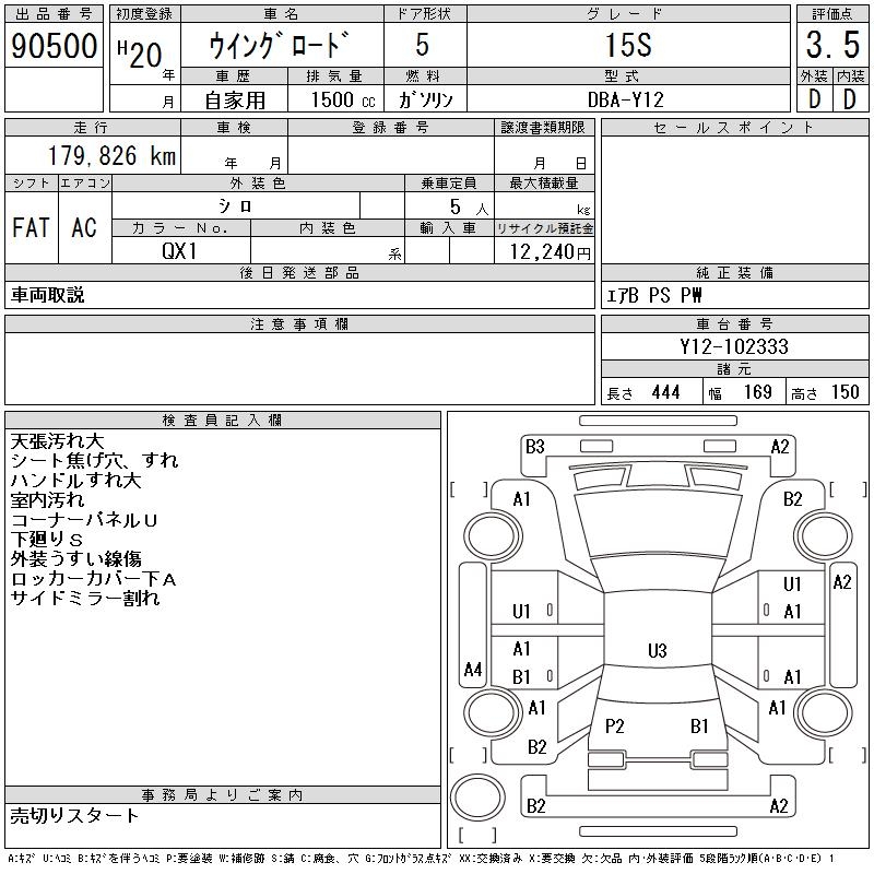NISSAN WINGROAD 15S - лот 90500