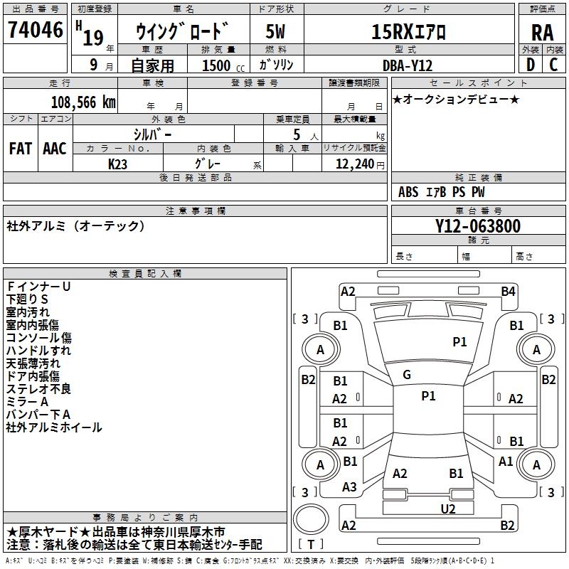 NISSAN WINGROAD 15RX AERO - лот 74046