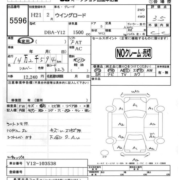 NISSAN WINGROAD - лот 5596