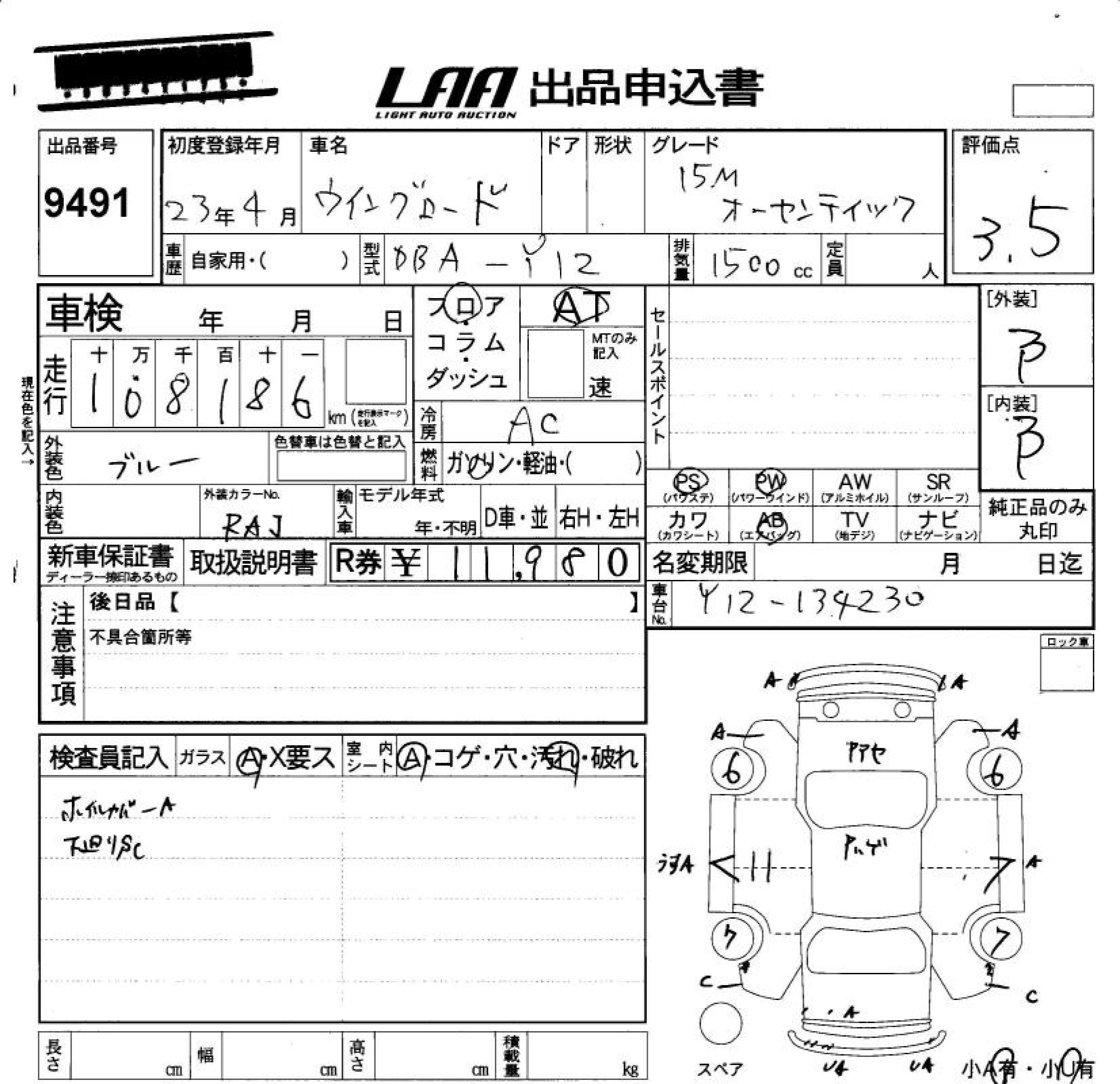 NISSAN WINGROAD - лот 9491