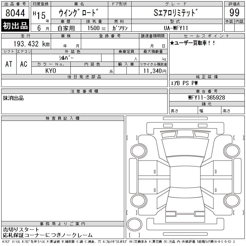 Все аукционы NISSAN WINGROAD