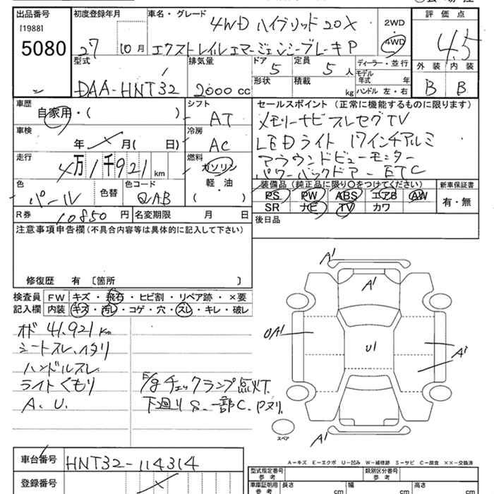 NISSAN X-TRAIL 4WD 20X hybrid E тормоз package - лот 5080