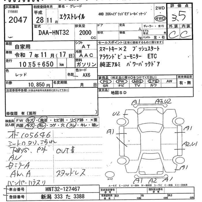 NISSAN X-TRAIL 4WD 20X hybrid E тормоз package - лот 2047