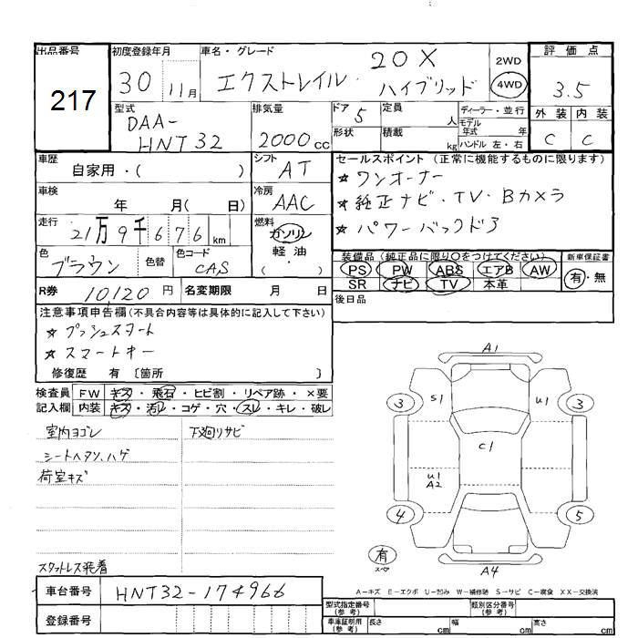 NISSAN X-TRAIL 4WD 20X HYBRID - лот 217