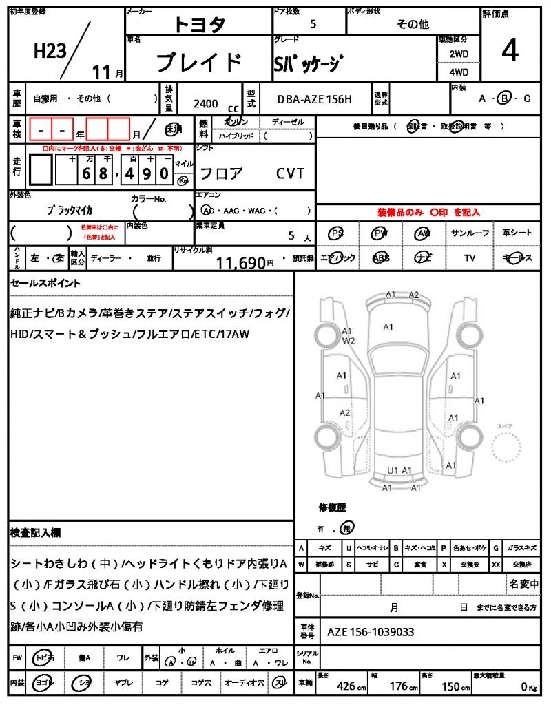- Кузов: AZE156H