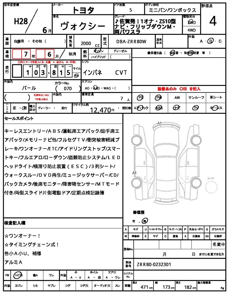 - Кузов: ZWR80G