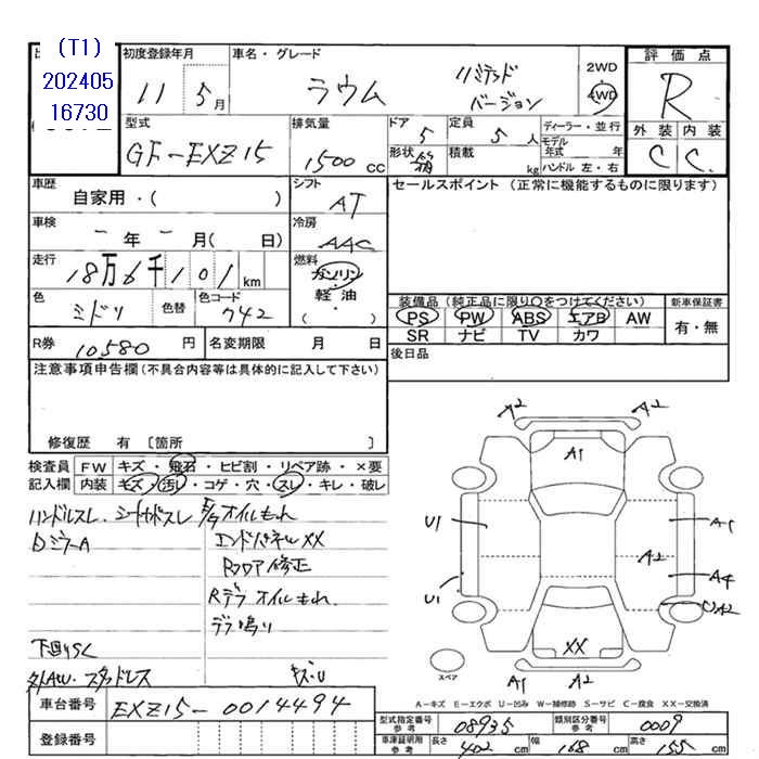 - Кузов: EXZ15