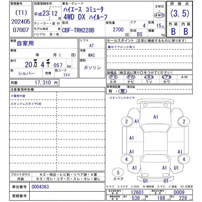 - Кузов: KDH223B