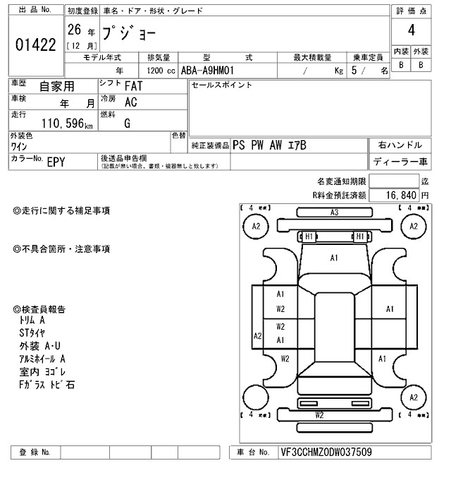 PEUGEOT 208 - лот 1422