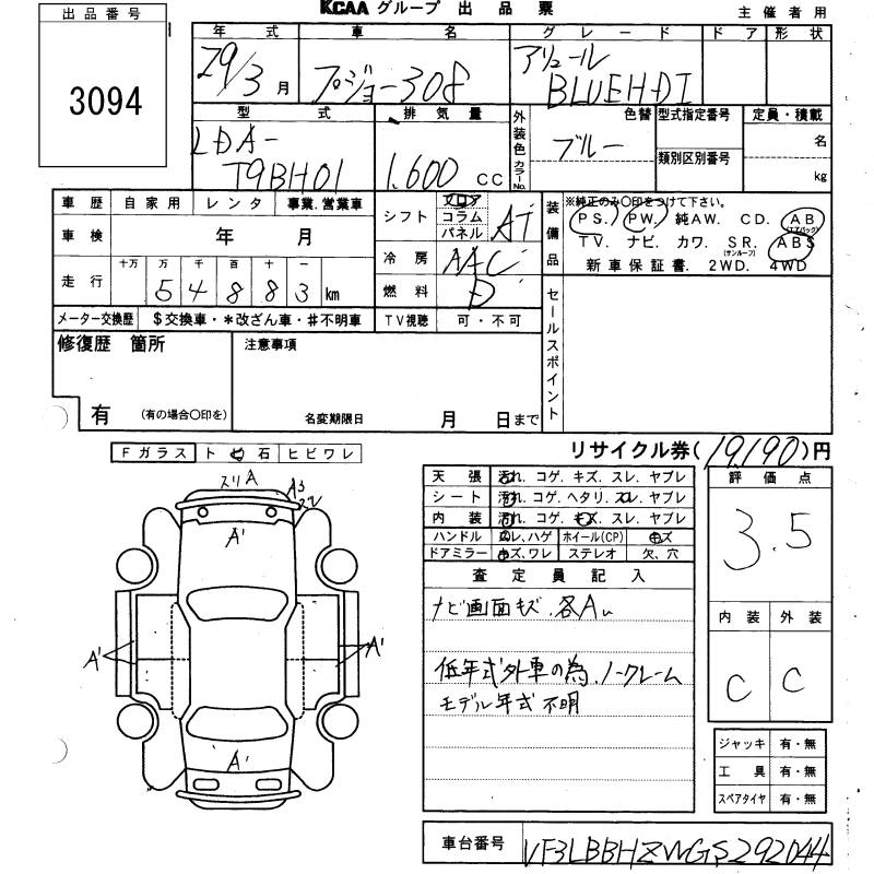 PEUGEOT 308 - лот 3094