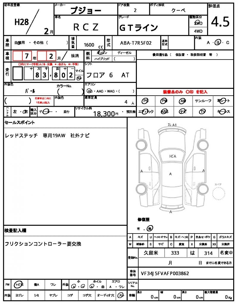 Все аукционы PEUGEOT RCZ