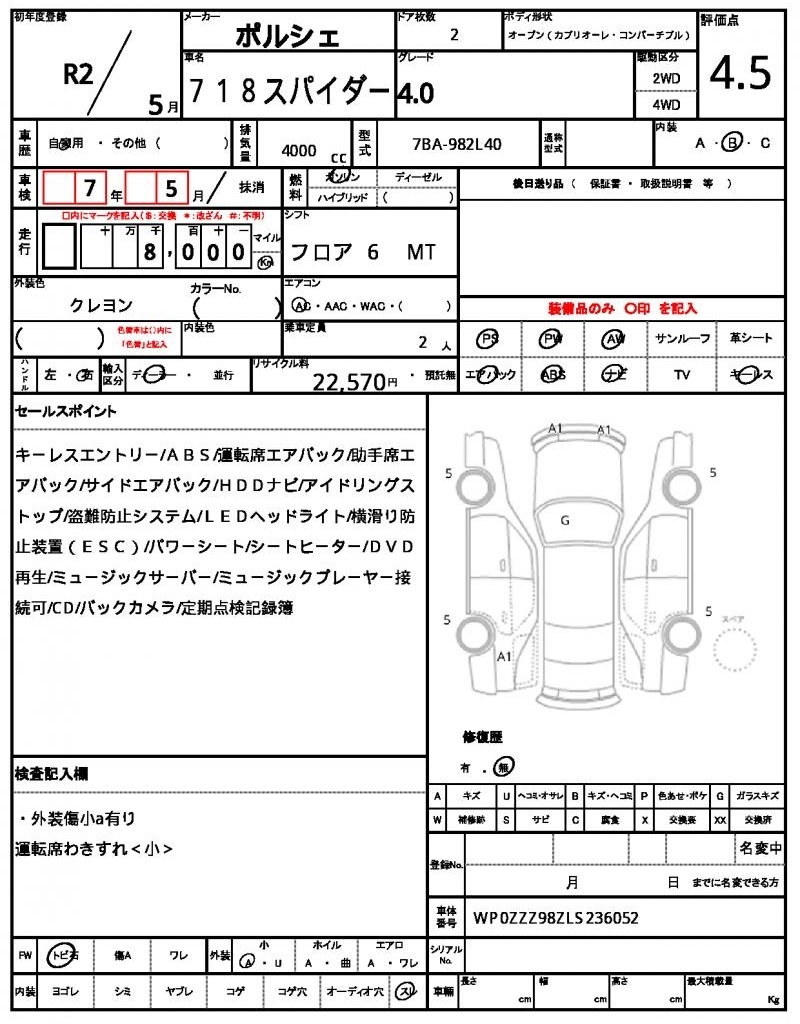 PORSCHE 718 SPYDER - лот 55648