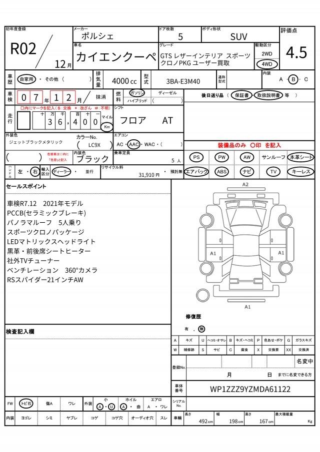PORSCHE CAYENNE COUPE - лот 52434