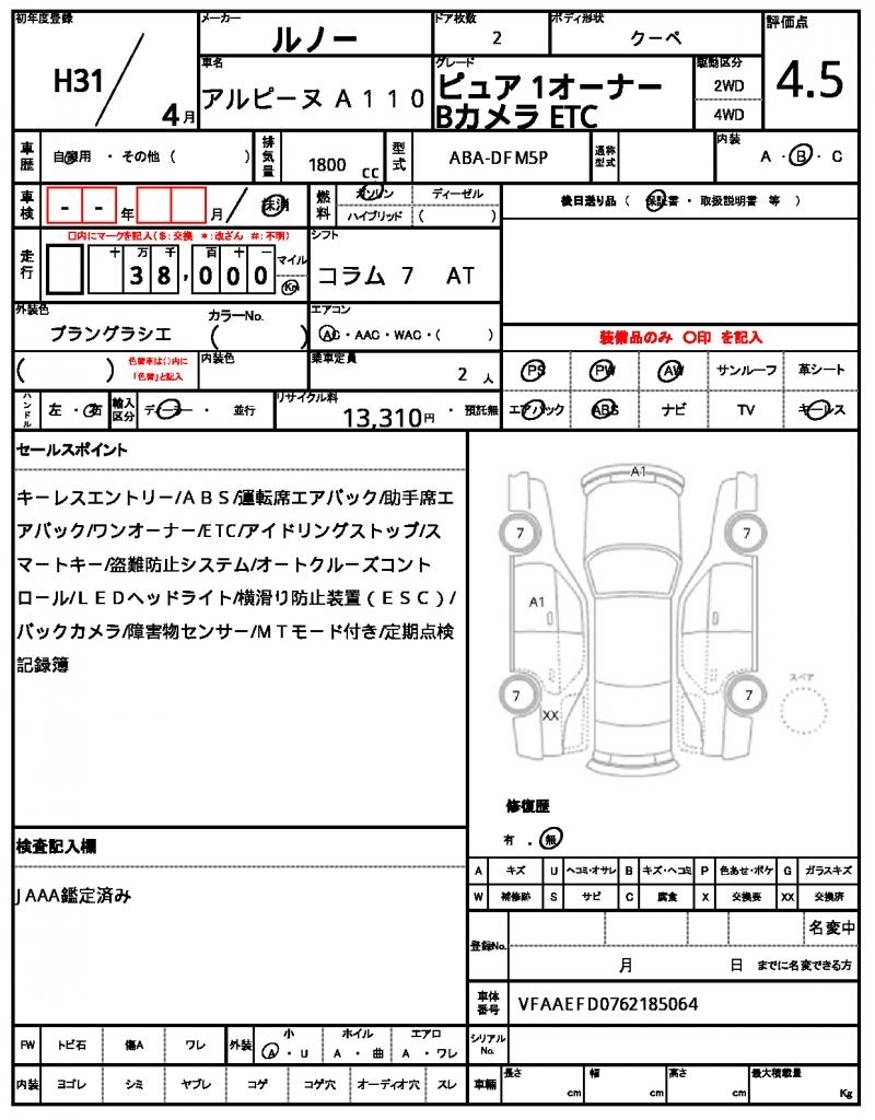 RENAULT ALPINE A110 - лот 7751
