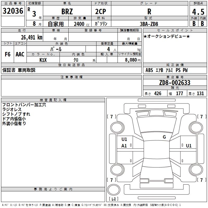 SUBARU BRZ R - лот 32036