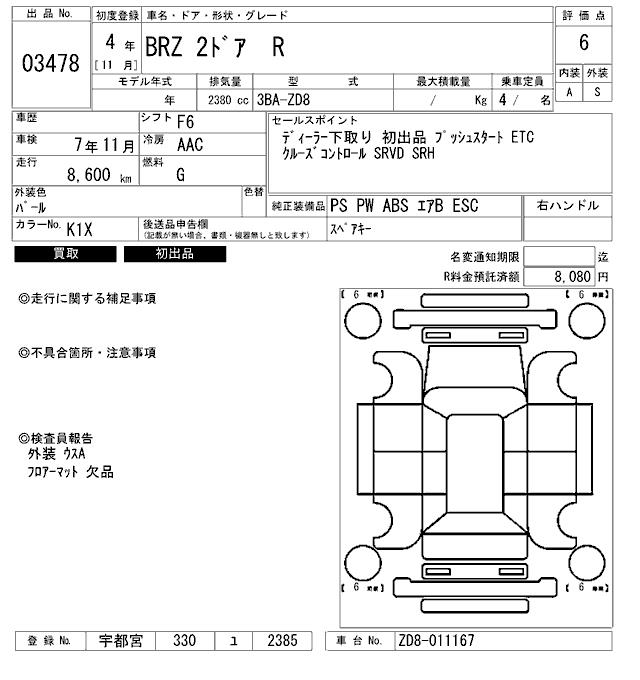 SUBARU BRZ R - лот 3478