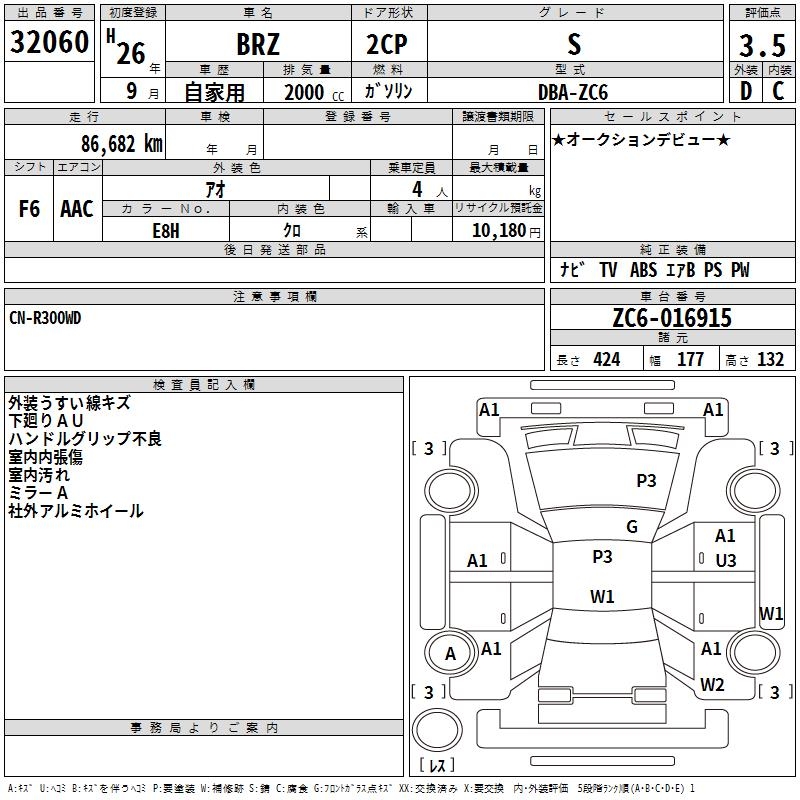 SUBARU BRZ S - лот 32060