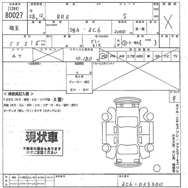 SUBARU BRZ S - лот 80027