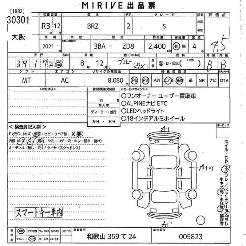 Все аукционы SUBARU BRZ