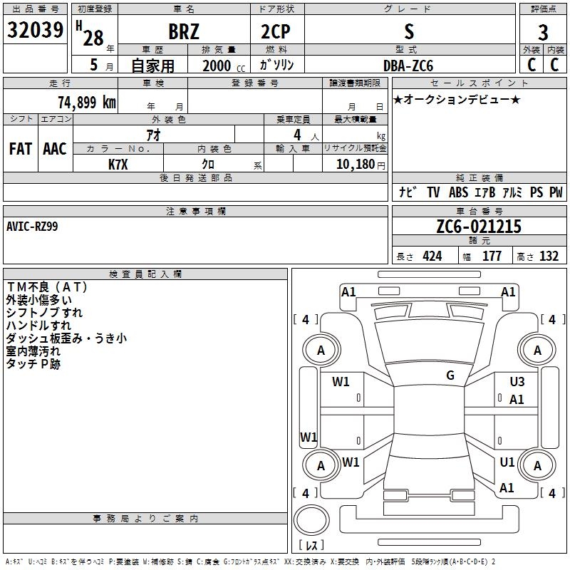 SUBARU BRZ S - лот 32039
