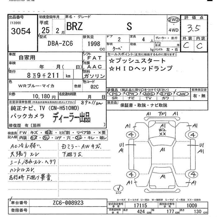 SUBARU BRZ S 2WD - лот 3054