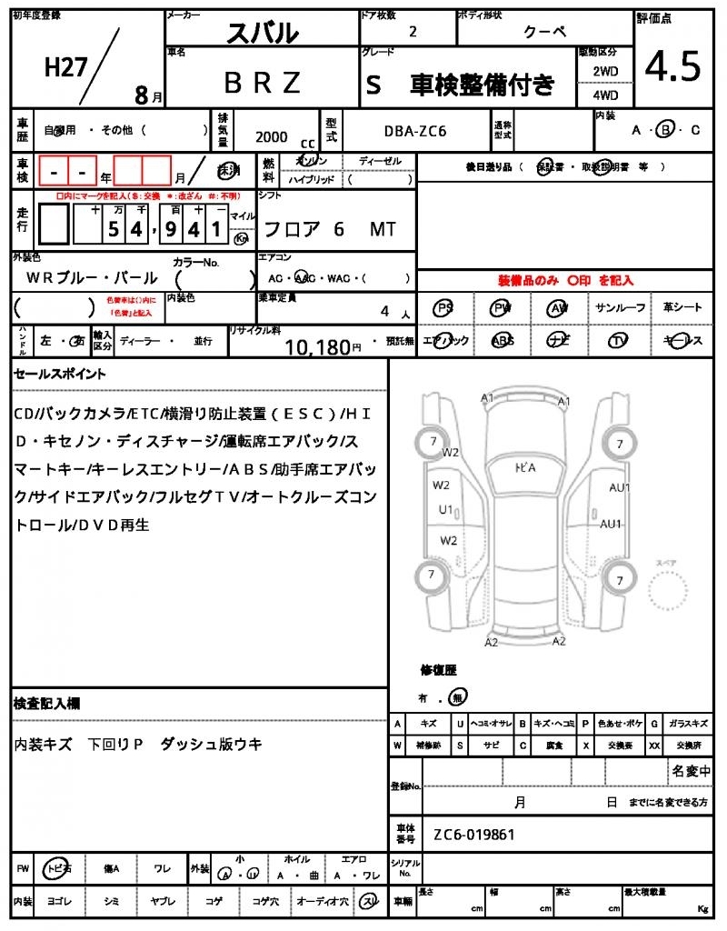 SUBARU BRZ - лот 59700