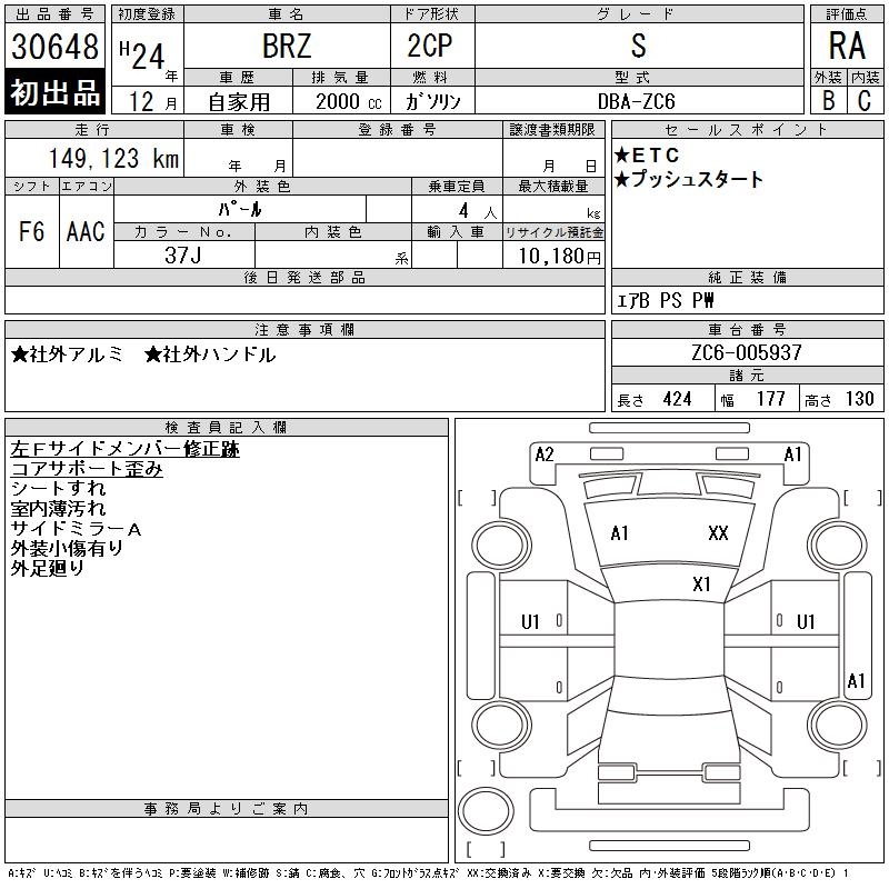 SUBARU BRZ S - лот 30648