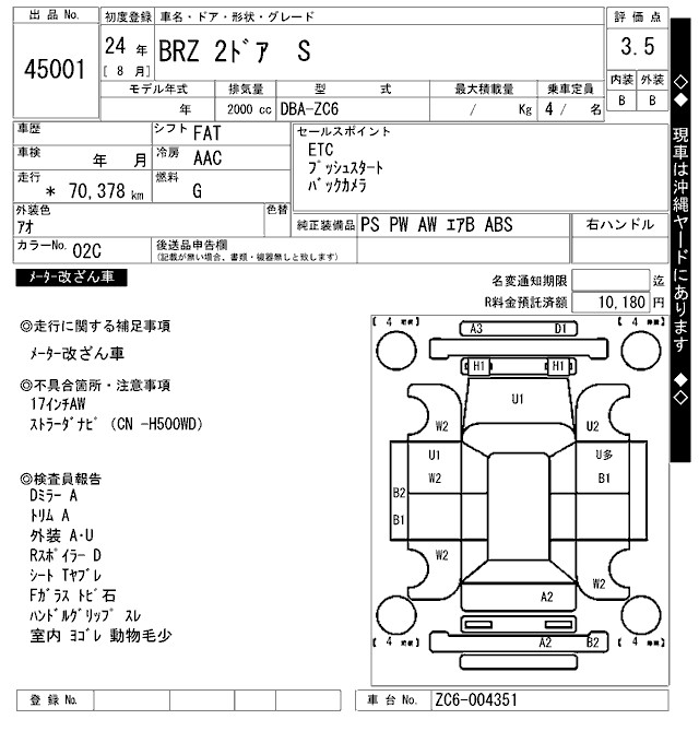 SUBARU BRZ S - лот 45001