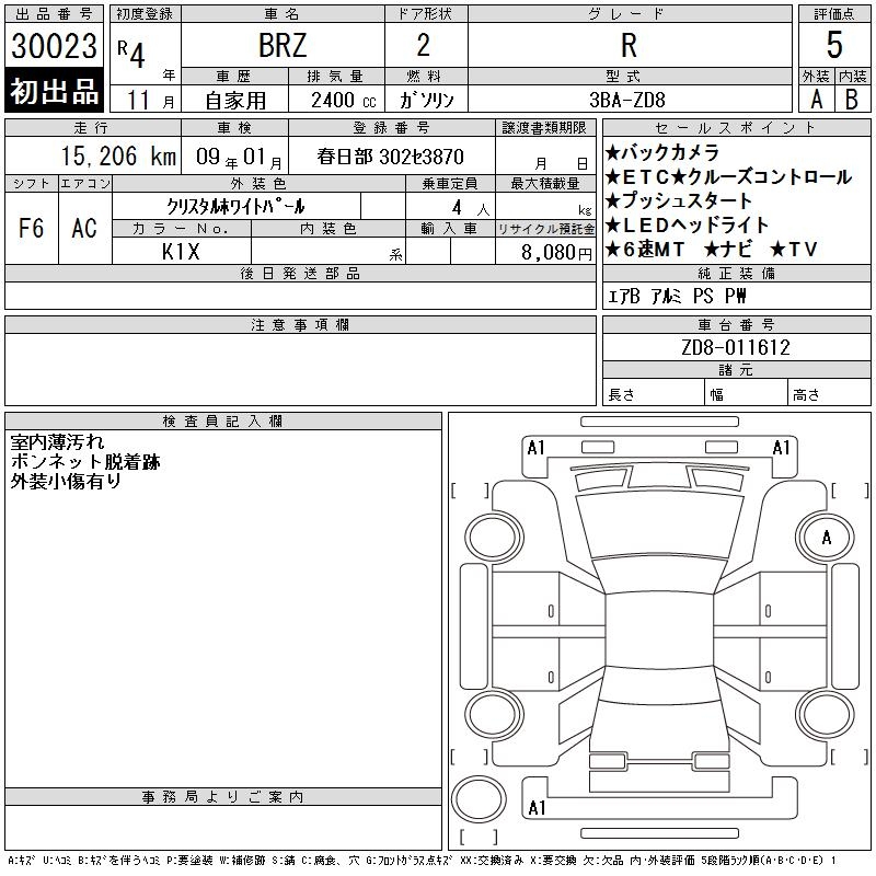 SUBARU BRZ R - лот 30023