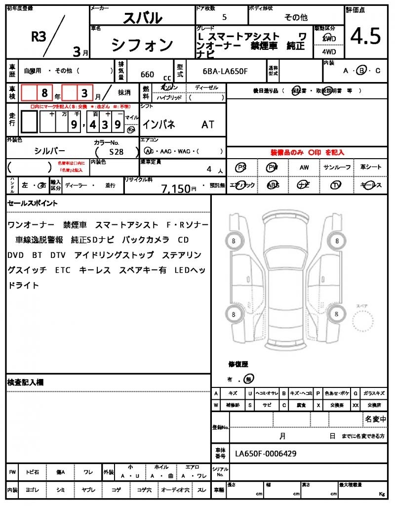 SUBARU CHIFFON - лот 41748