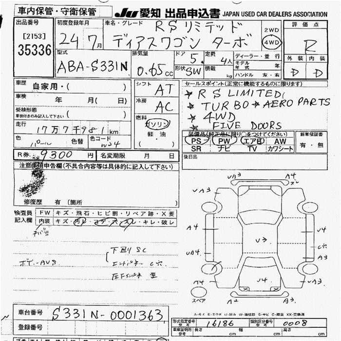 SUBARU DIAS WAGON - лот 35336