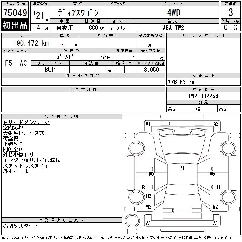 Все аукционы SUBARU DIAS WAGON