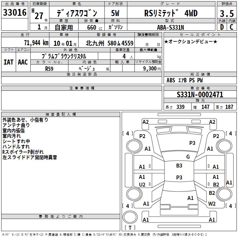 SUBARU DIAS WAGON - лот 33016