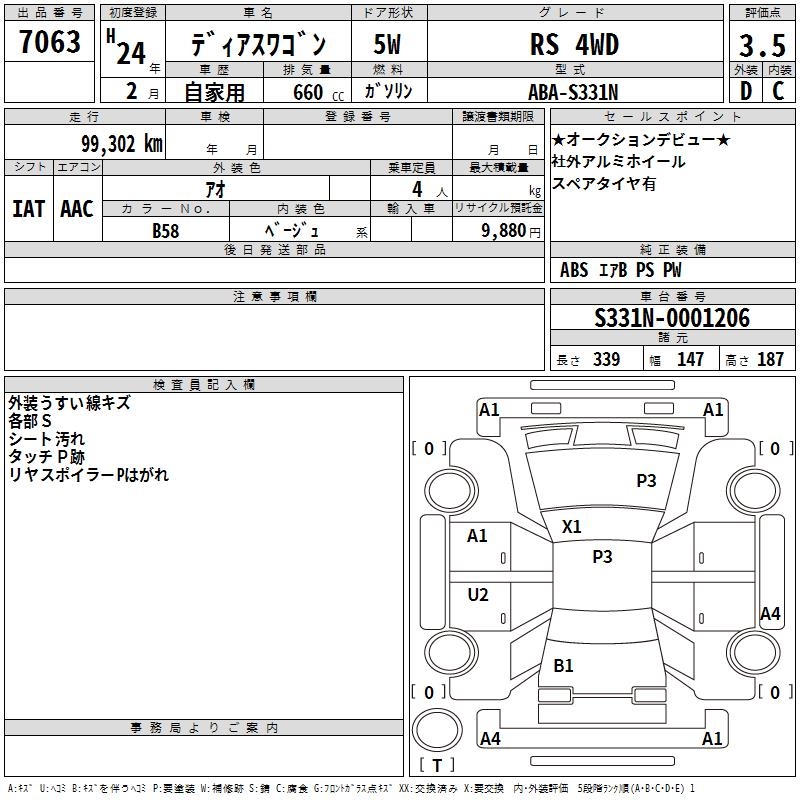 SUBARU DIAS WAGON - лот 7063