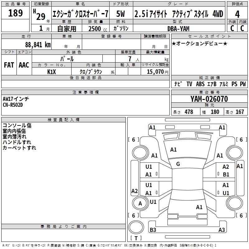 SUBARU EXIGA CROSSOVER 7 - лот 189