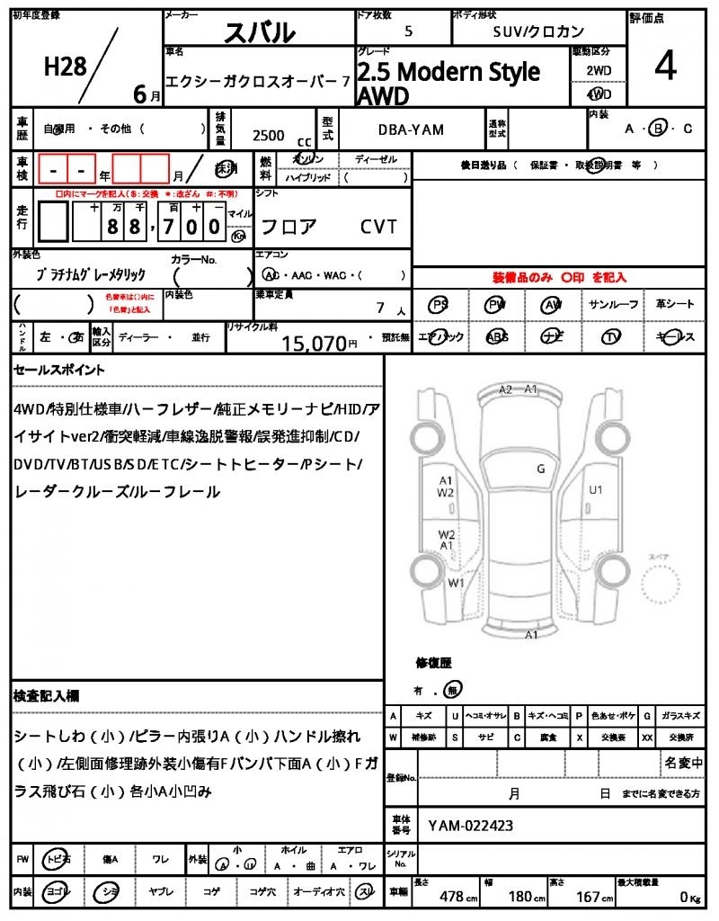 SUBARU EXIGA CROSSOVER 7 - лот 57218
