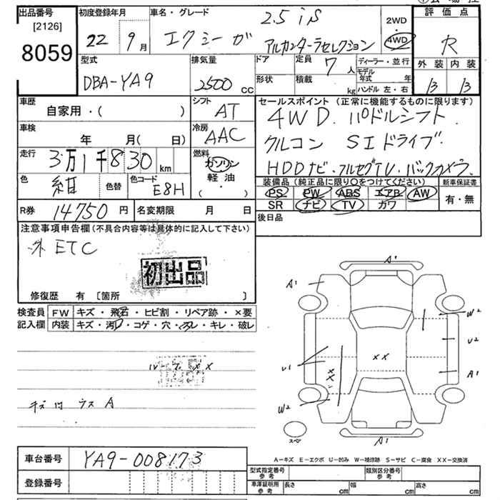 SUBARU EXIGA 4WD 2.5I-S ALCANTARA SELECTION - лот 8059