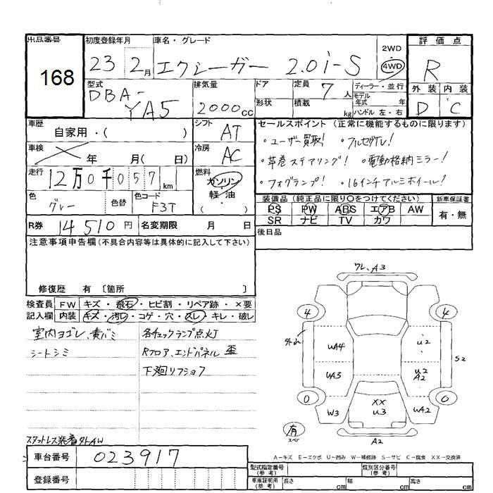 SUBARU EXIGA 4WD 2.0i-S - лот 168