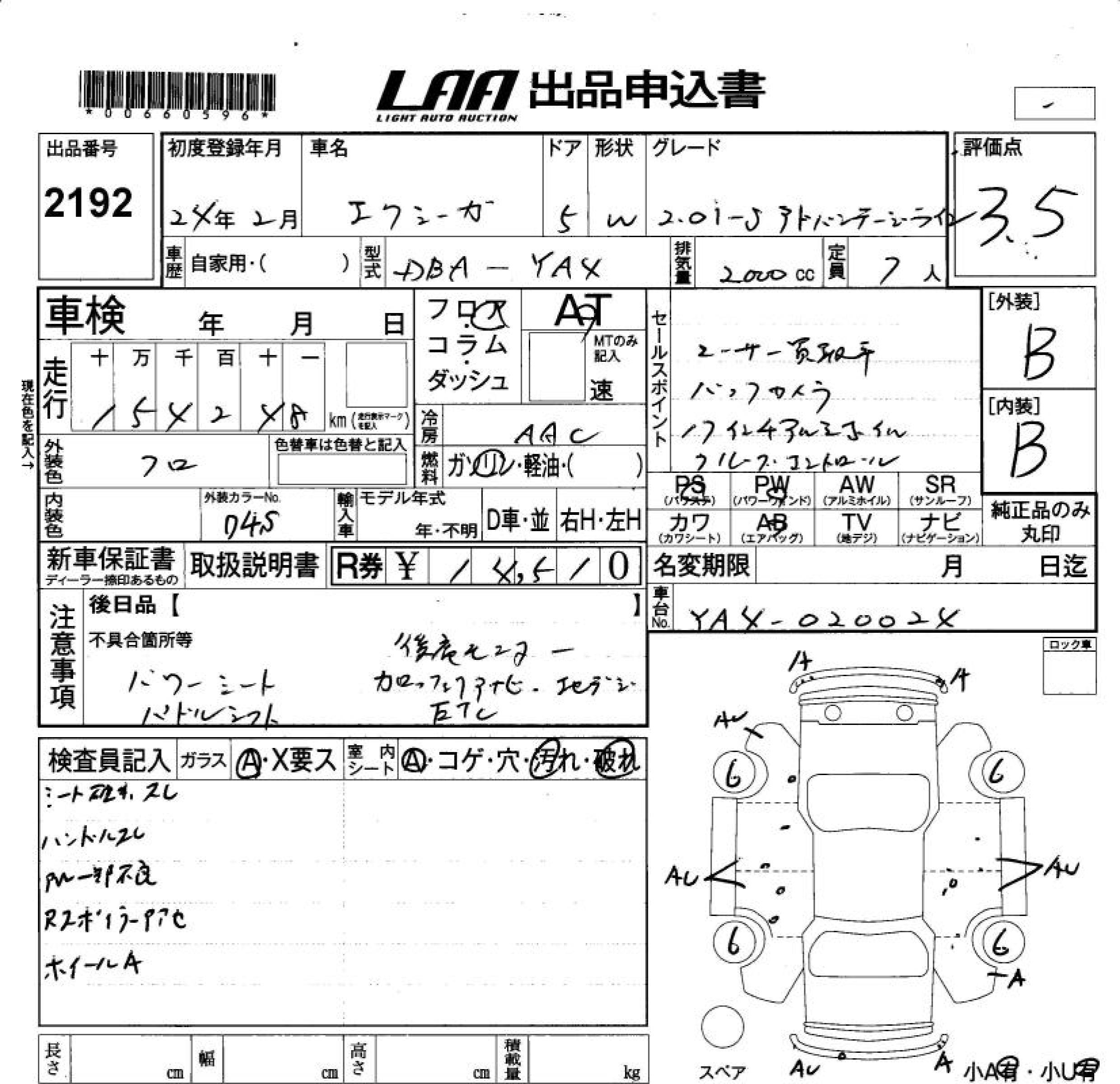 SUBARU EXIGA 2.0I-SADO VANTAGE LAI - лот 2192