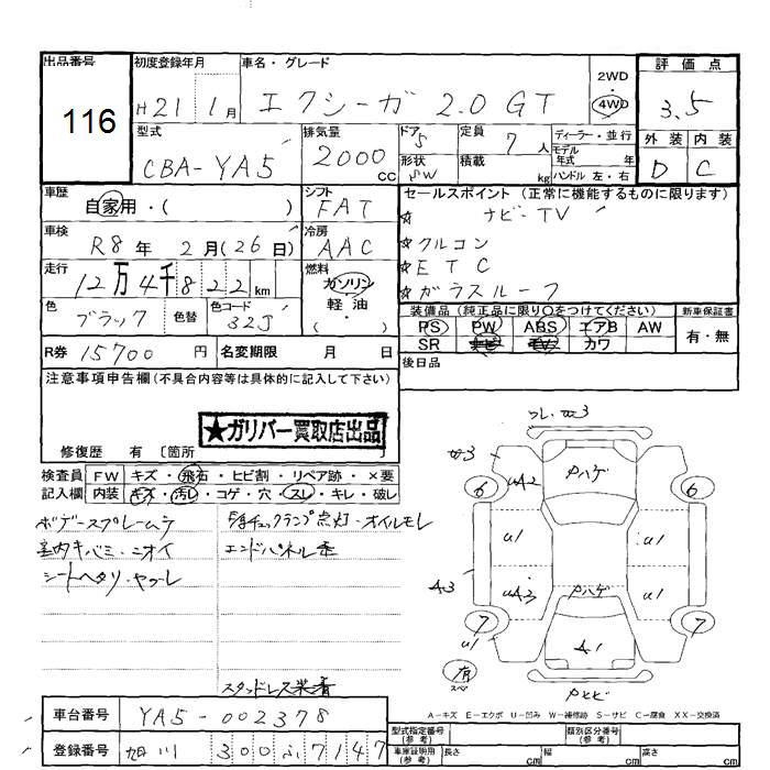 Все аукционы SUBARU EXIGA