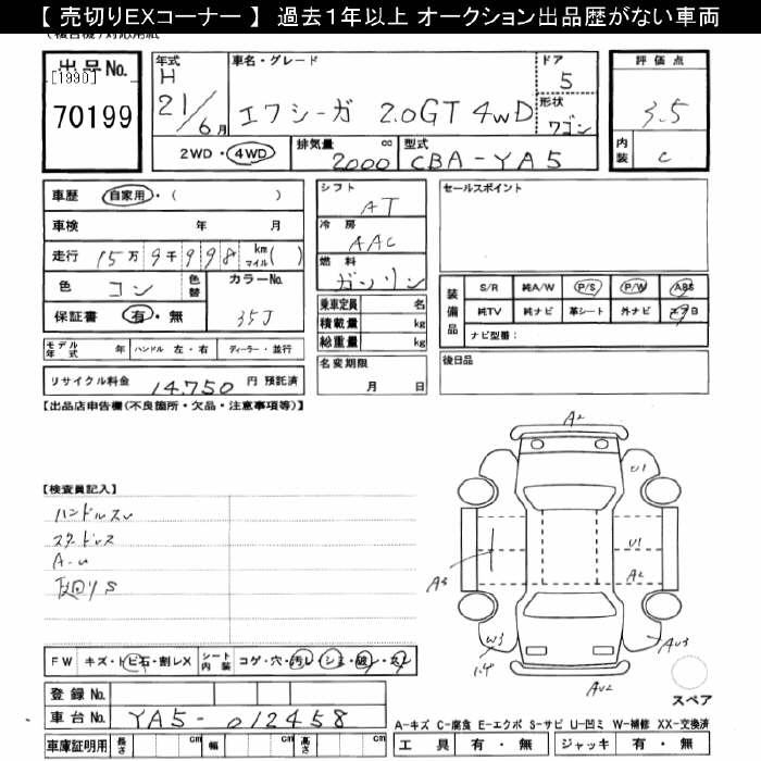 SUBARU EXIGA 4WD 2.0GT - лот 70199