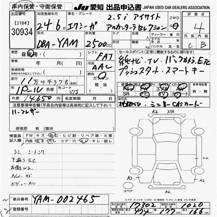 SUBARU EXIGA 2.5I EYESIGHT ALCANTA 4WD - лот 30934
