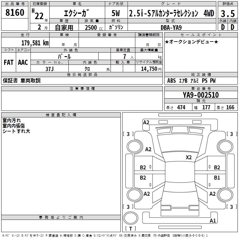 SUBARU EXIGA 2.5I-S ALCANTARA SELECT 4WD - лот 8160
