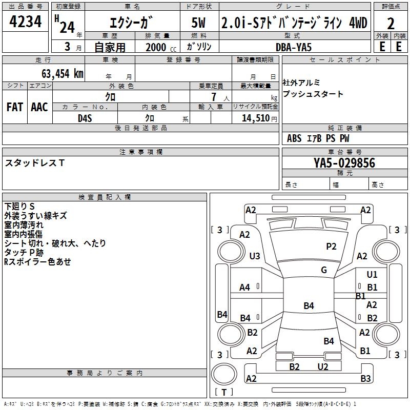 SUBARU EXIGA 2.0I-SADO VANTAGE 4WD - лот 4234