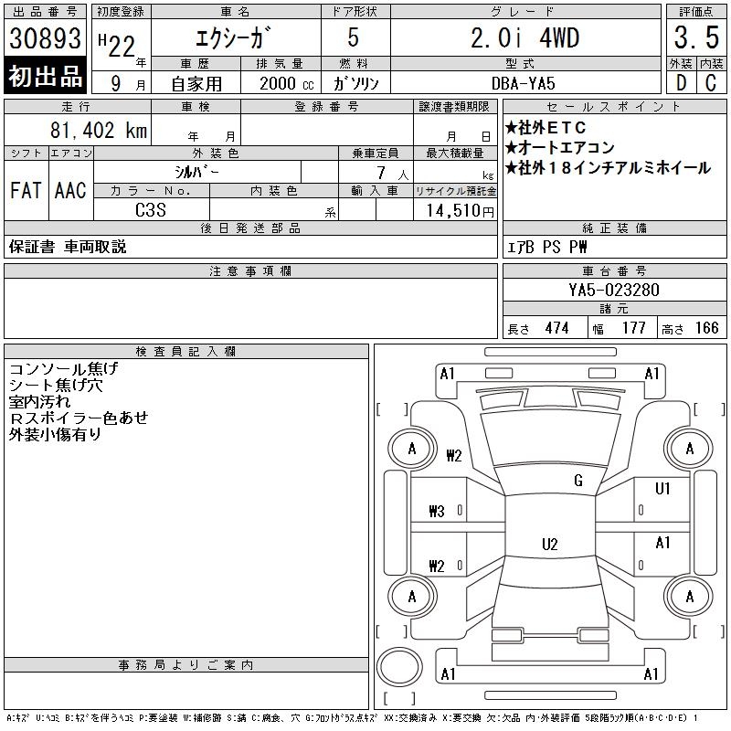 Все аукционы SUBARU EXIGA
