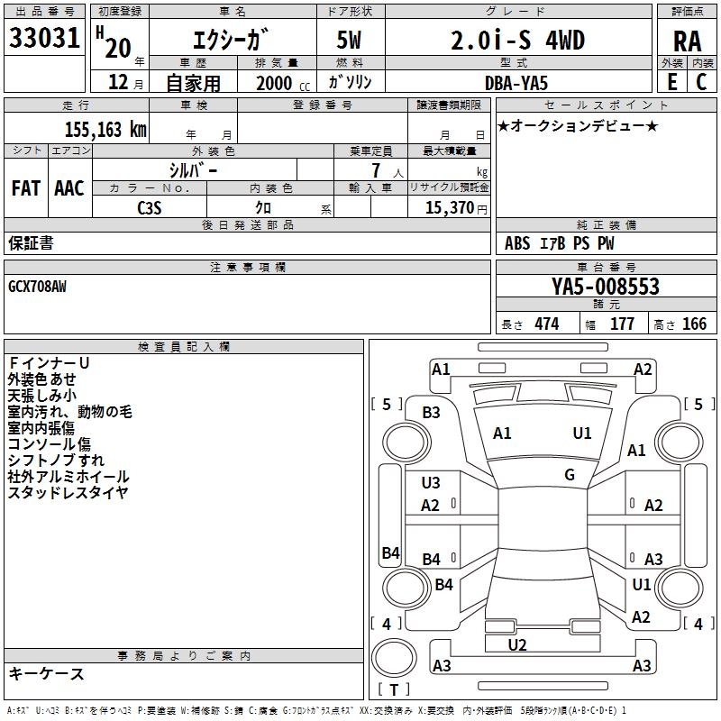 SUBARU EXIGA 2.0i-S 4WD - лот 33031